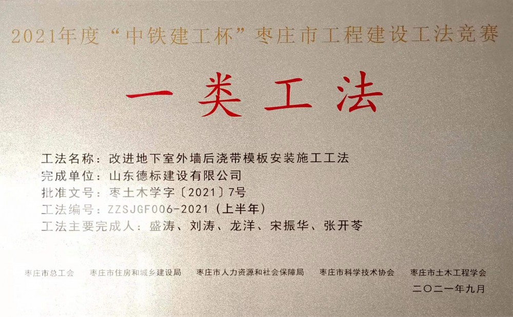 2021年度“中鐵建工杯”棗莊市工程建設(shè)工法競賽-一類工···